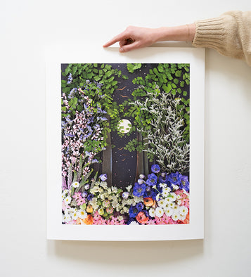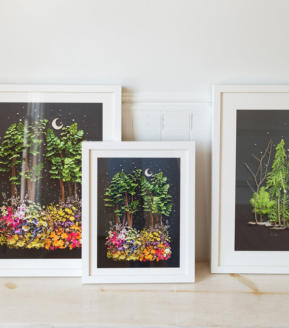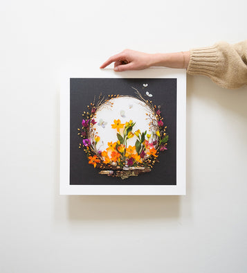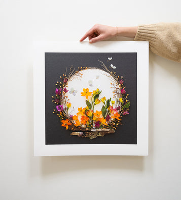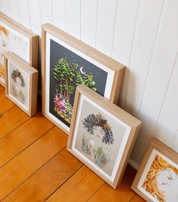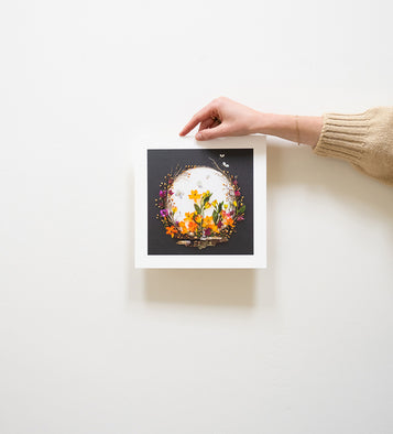 The only way Sister Golden co-founder Vicki's ephemeral artwork is preserved is through a print. While her originals only exist for a short time, our Flower Art Prints stand the test of time. Collectors can choose to order an unframed print and frame it themselves, or order a custom framed piece that’s delivered to their doorstep ready to hang!