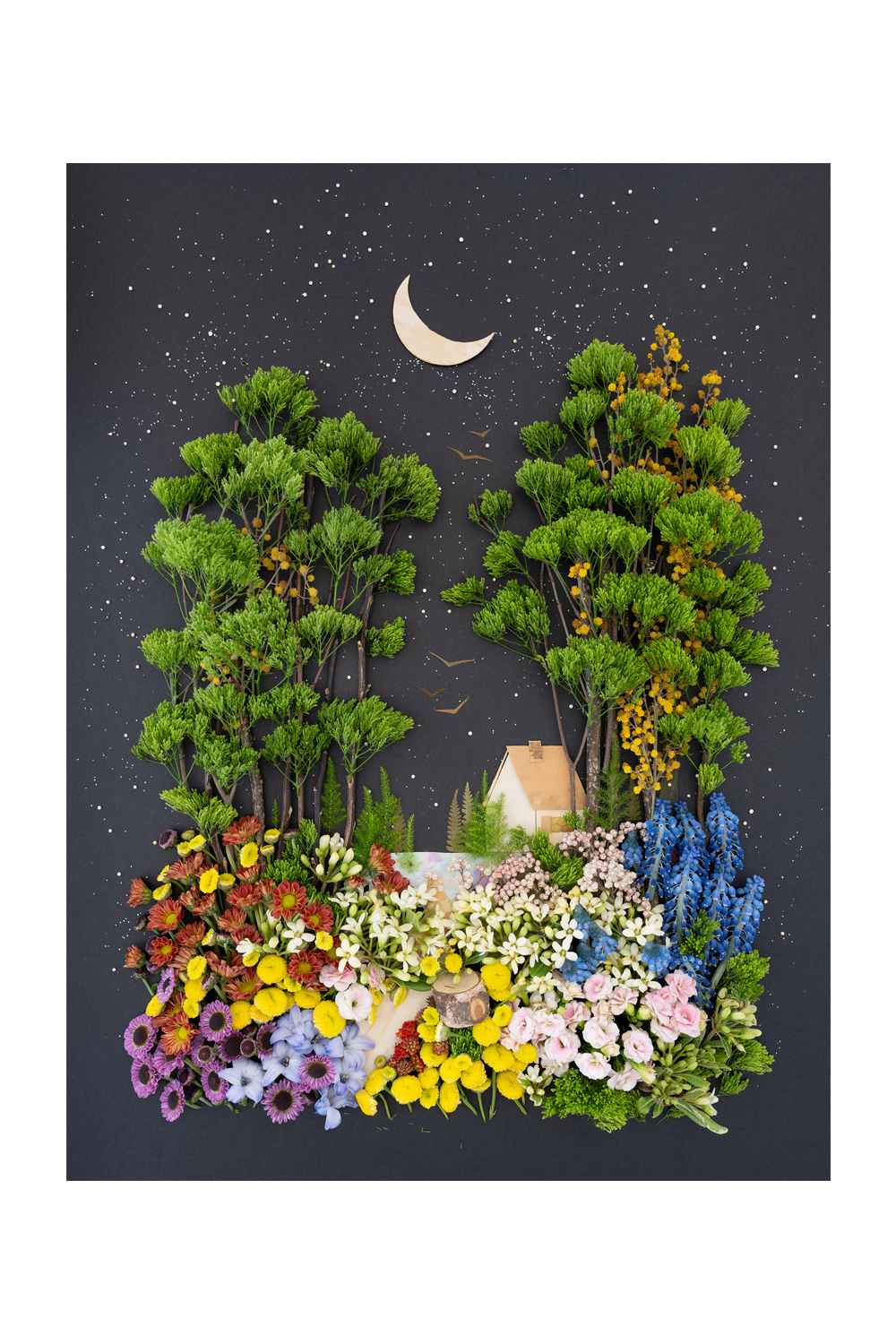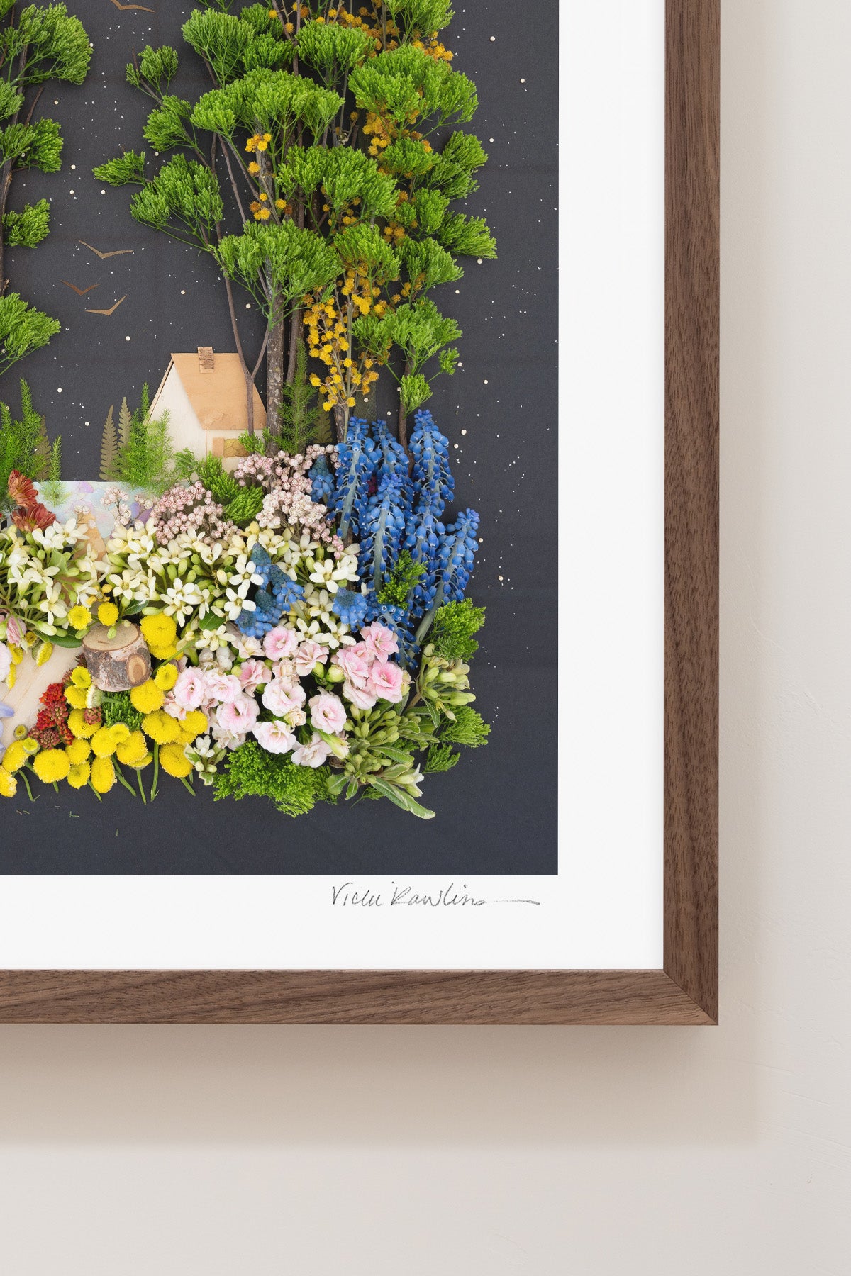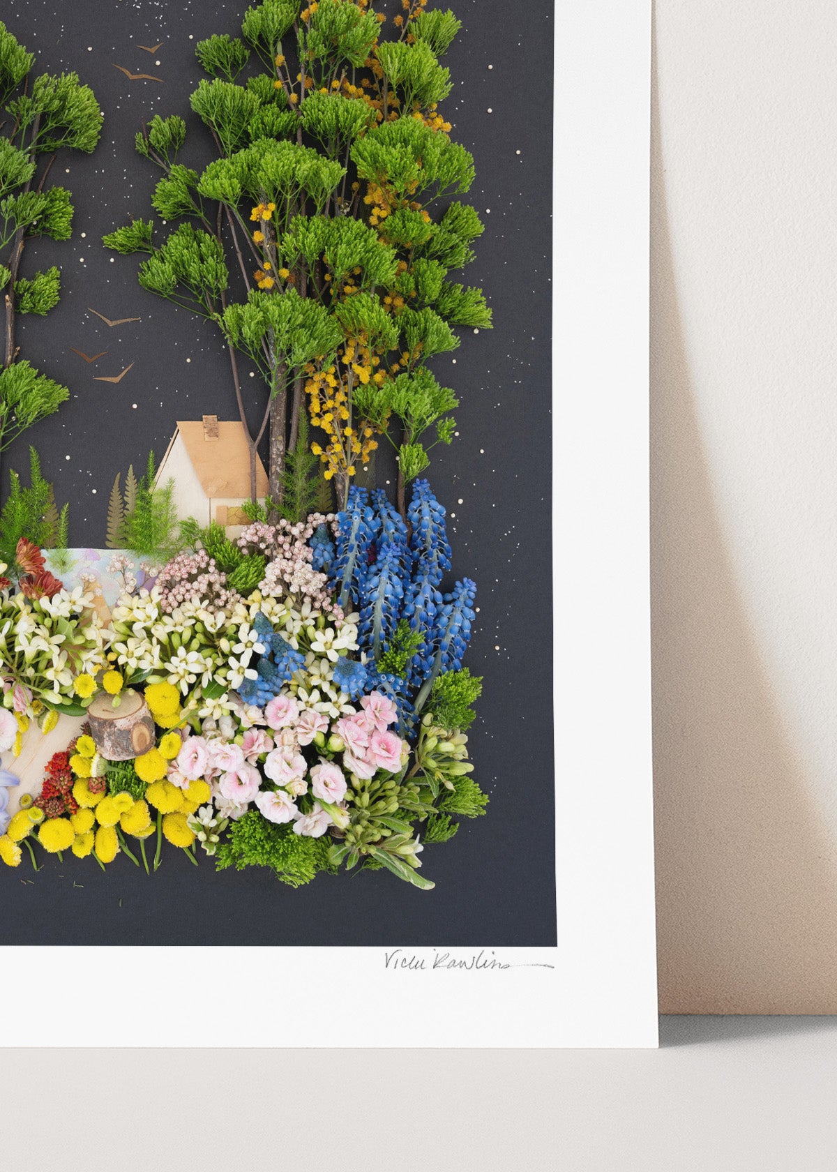 Co-owner Vicki creates stunning yet fleeting works of art made of 100% mother nature. Once her original is photographed, it’s recycled back into the earth. The originals are temporary, but our prints last forever.