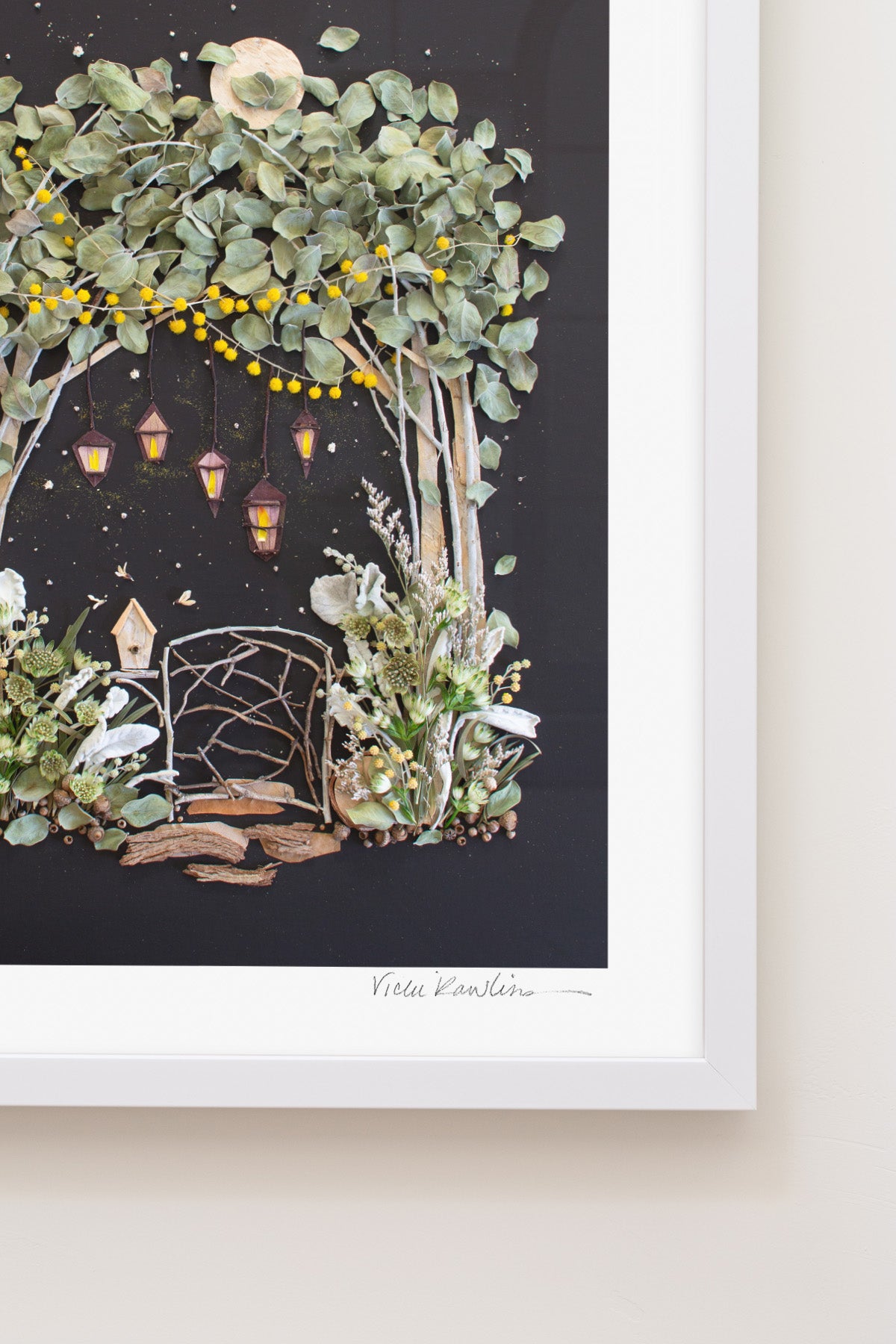 Co-owner Vicki creates stunning yet fleeting works of art made of 100% mother nature. Once her original is photographed, it’s recycled back into the earth. The originals are temporary, but our prints last forever.