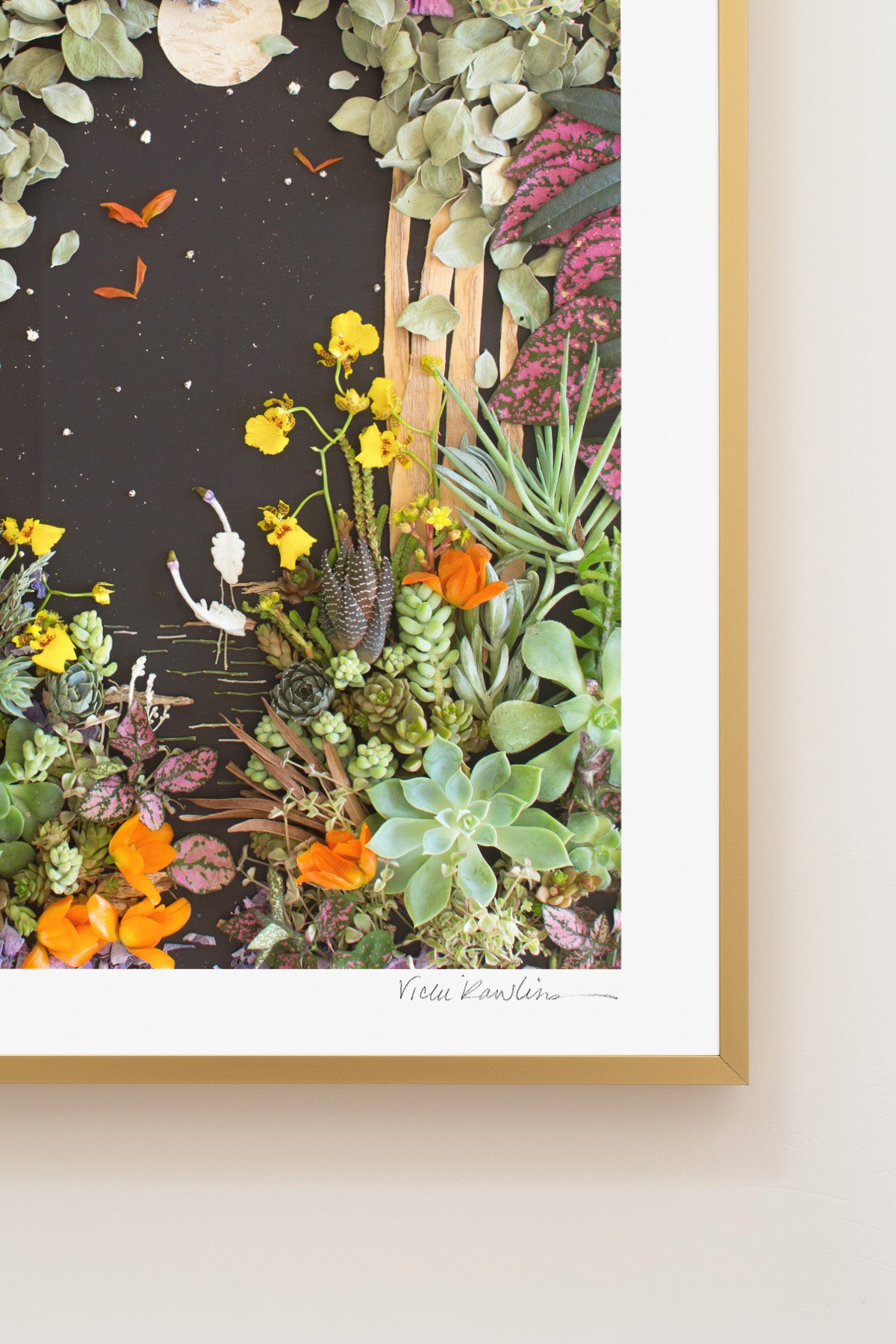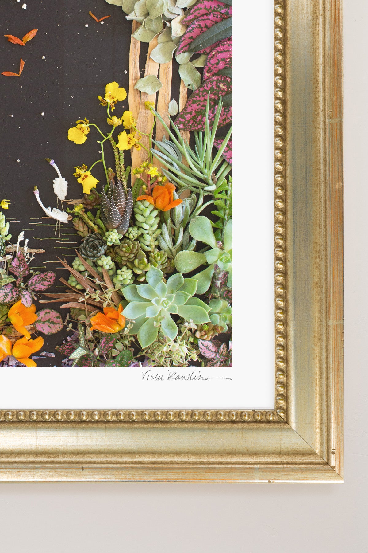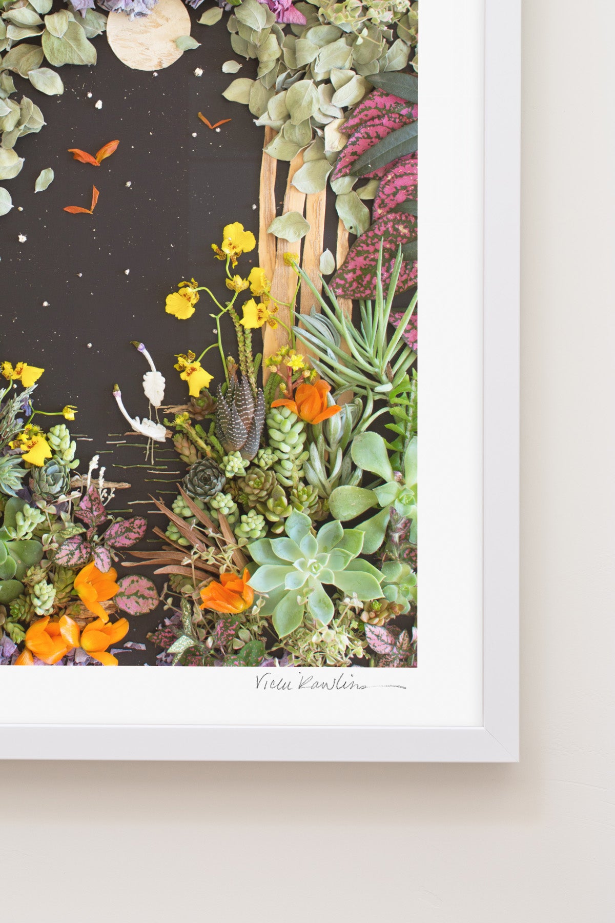 Co-owner Vicki creates stunning yet fleeting works of art made of 100% mother nature. Once her original is photographed, it’s recycled back into the earth. The originals are temporary, but our prints last forever.