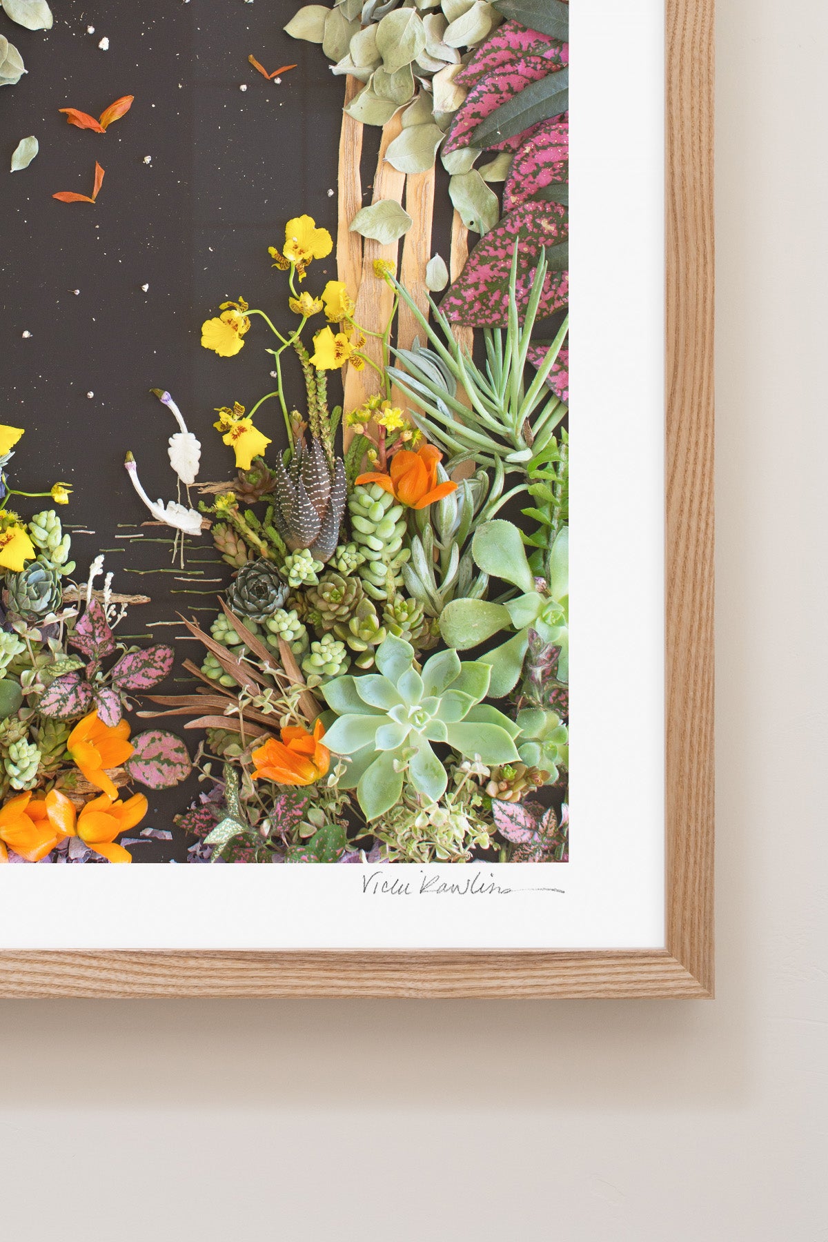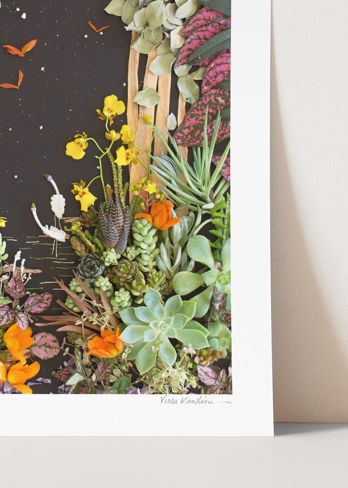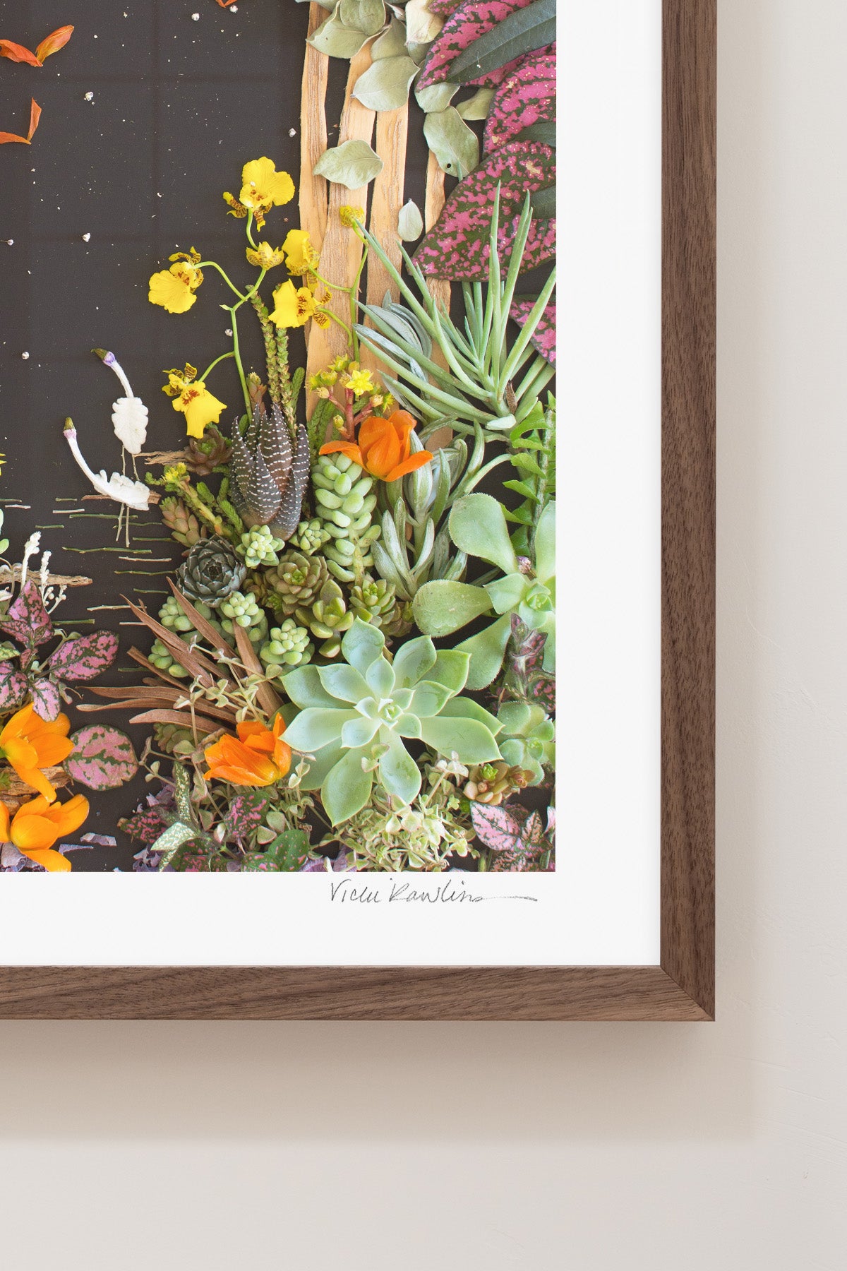 Co-owner Vicki creates stunning yet fleeting works of art made of 100% mother nature. Once her original is photographed, it’s recycled back into the earth. The originals are temporary, but our prints last forever.