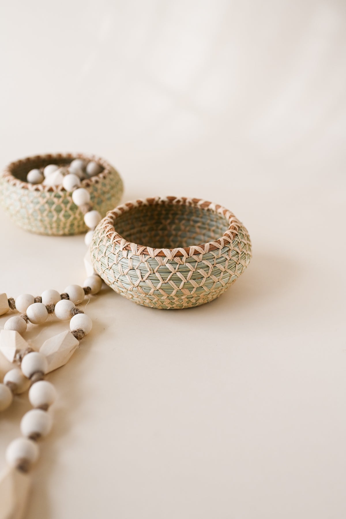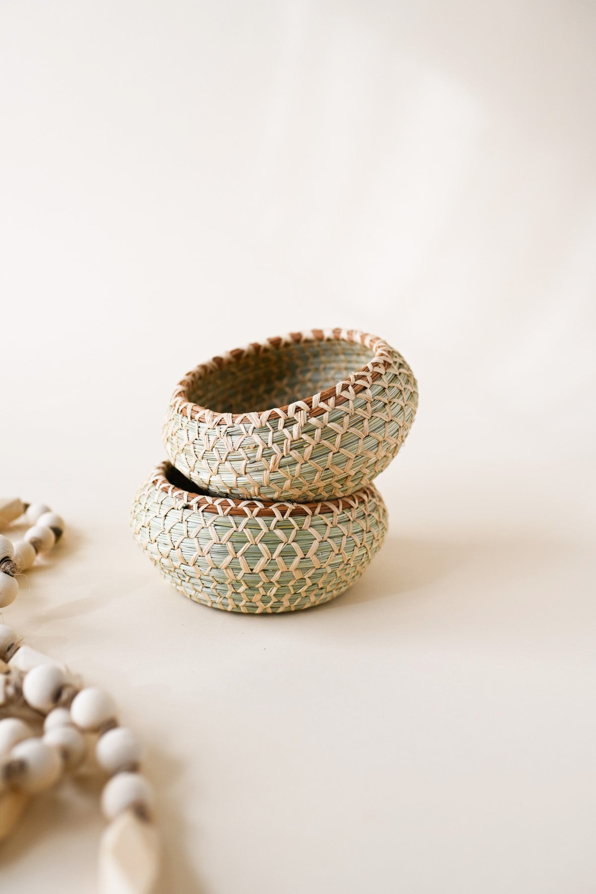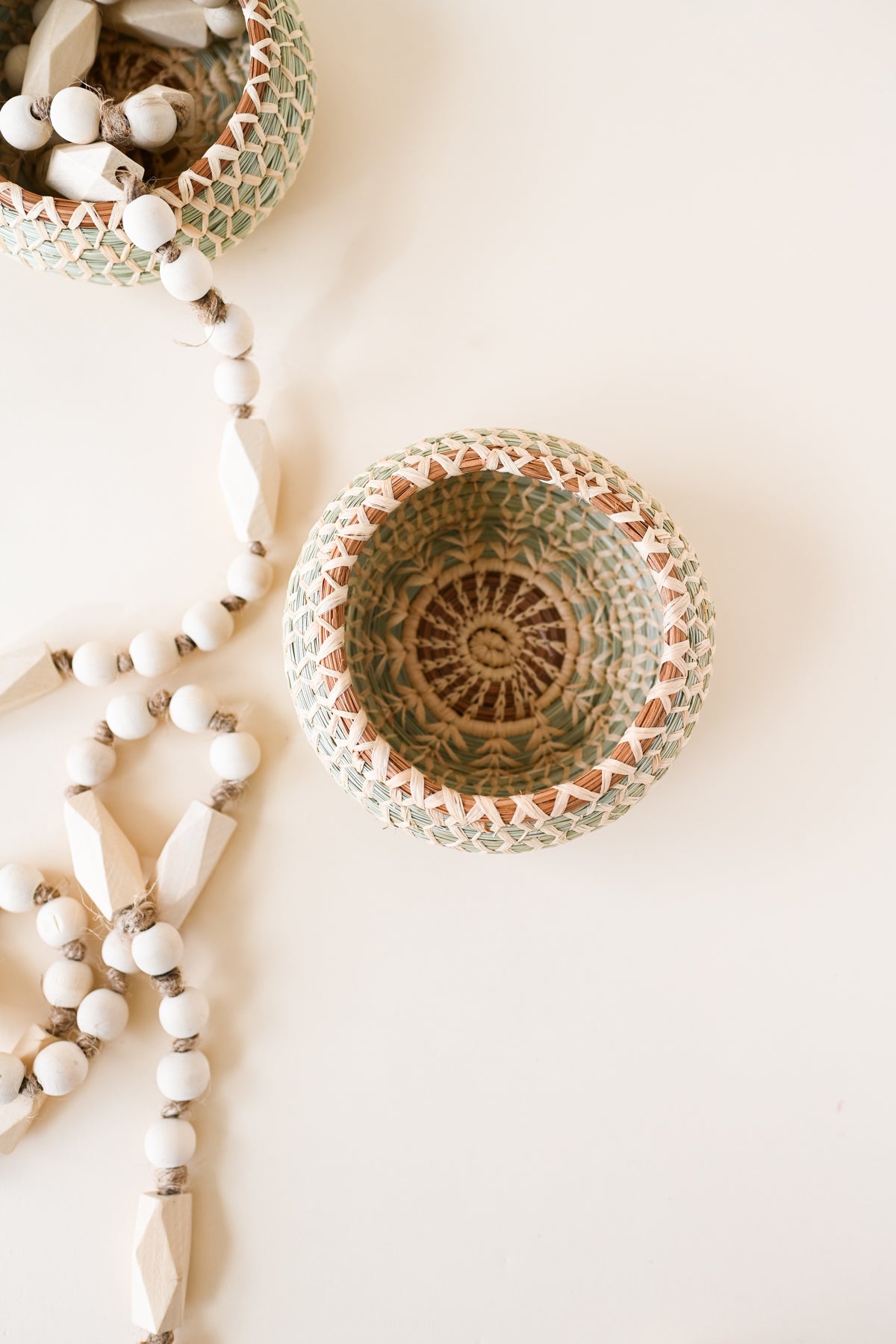 Handwoven from sustainably sourced pine needles and native grass in Guatemala, this exquisitely patterned basket is the right size to keep at your desk or on your counter!